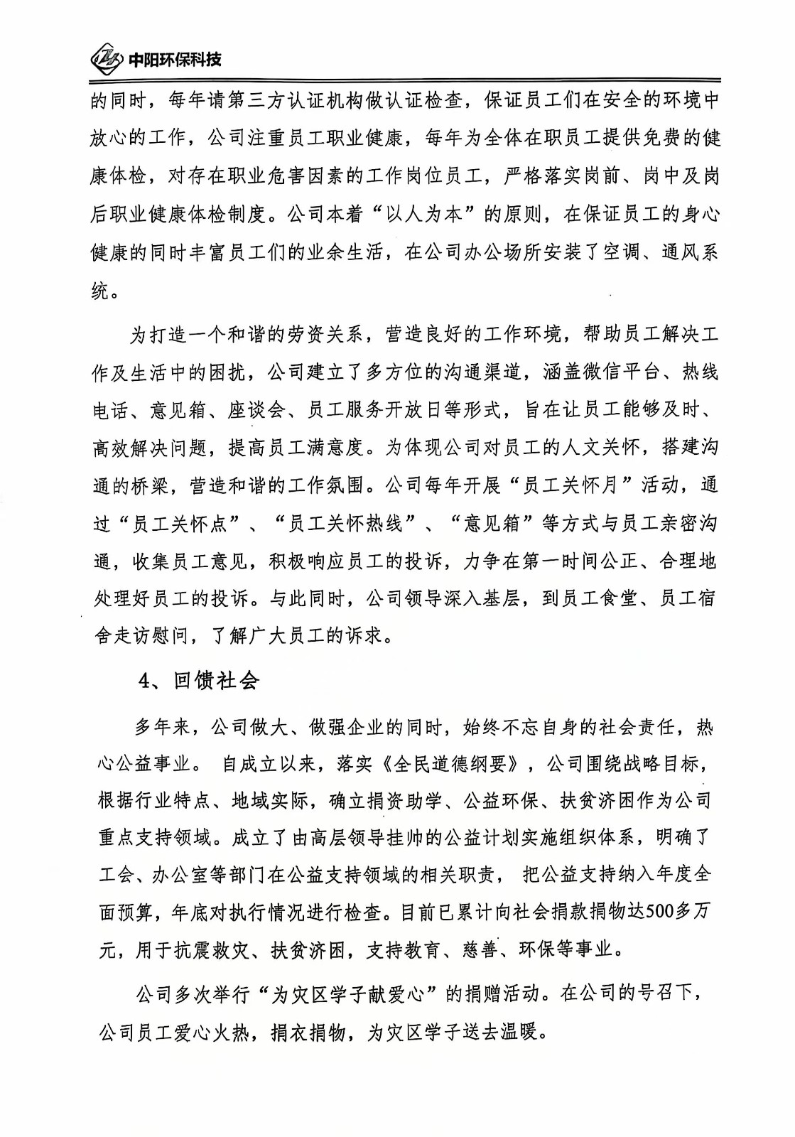 河南中陽環保科技有限公司2024年度社會責任報告