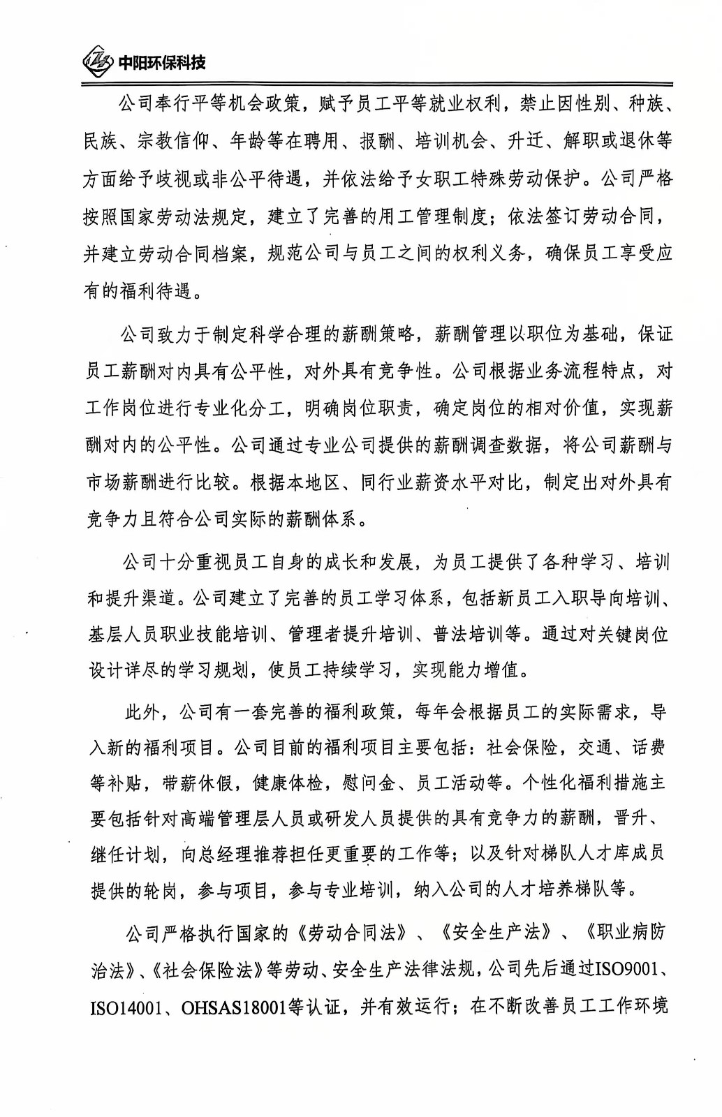 >河南中陽環保科技有限公司2024年度社會責任報告